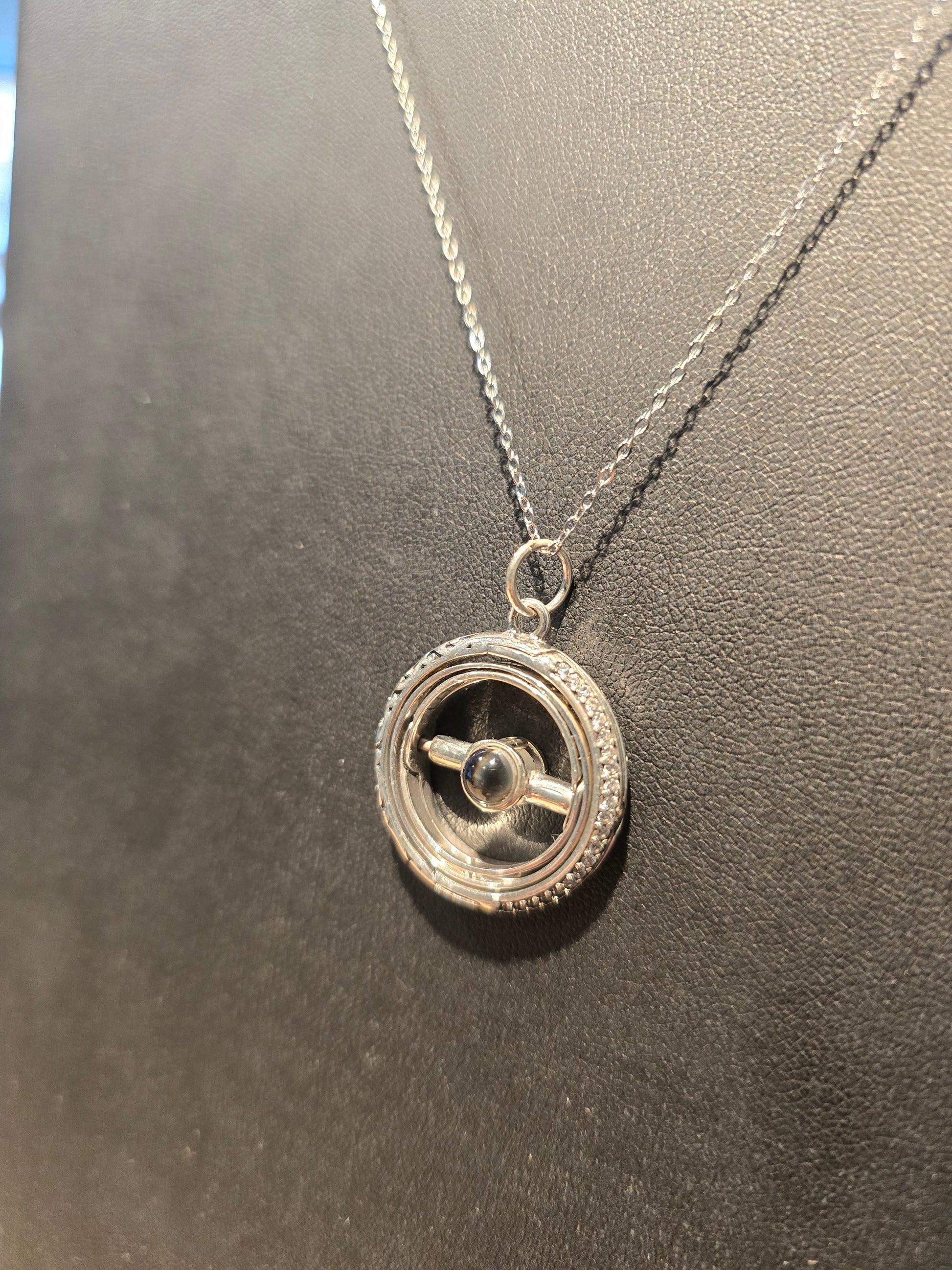 Ασημένιο κολιέ με γυροσκόπιο εξαιρετικής τεχνοτροπίας με πέτρα προβολής εικόνας