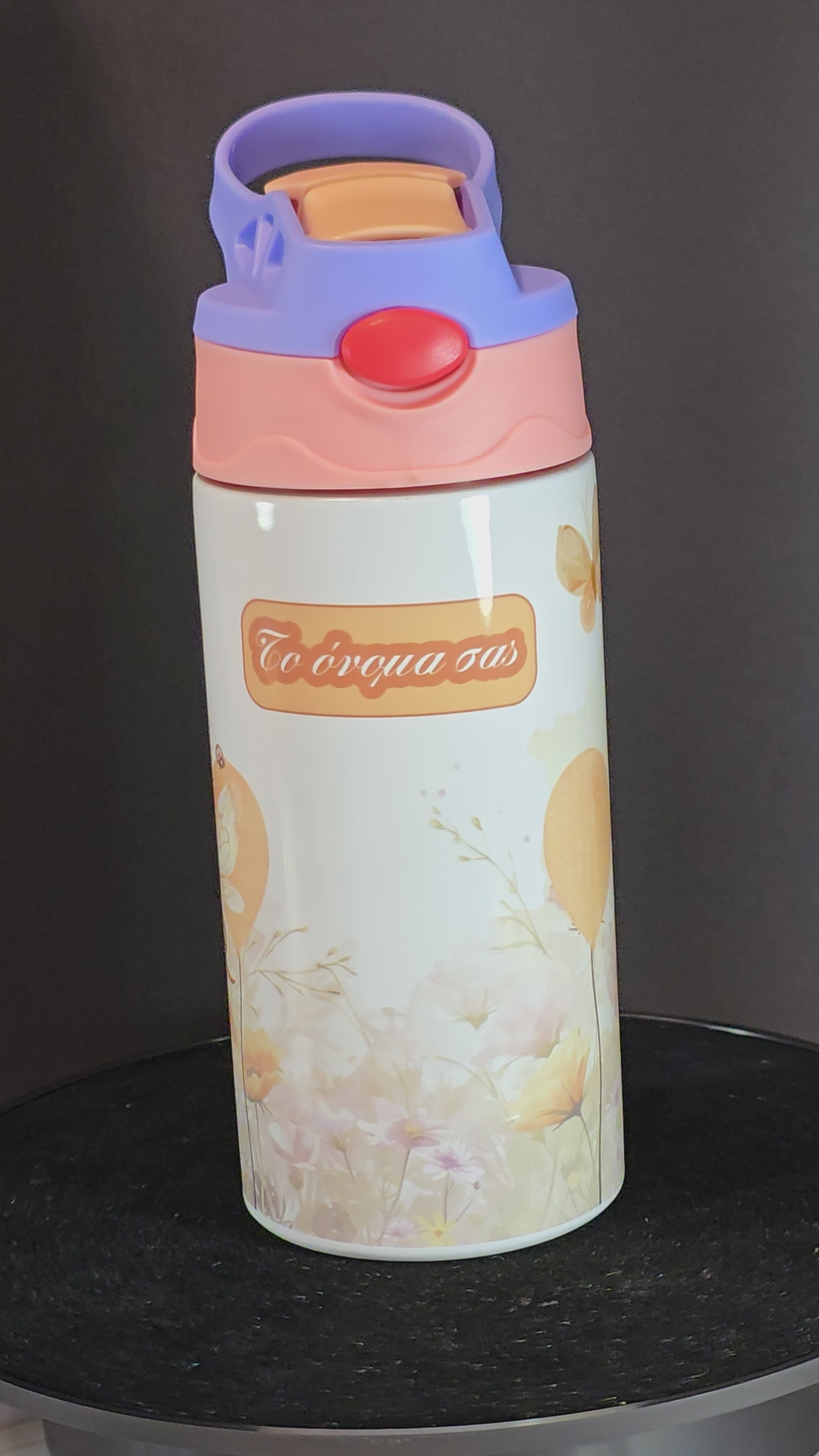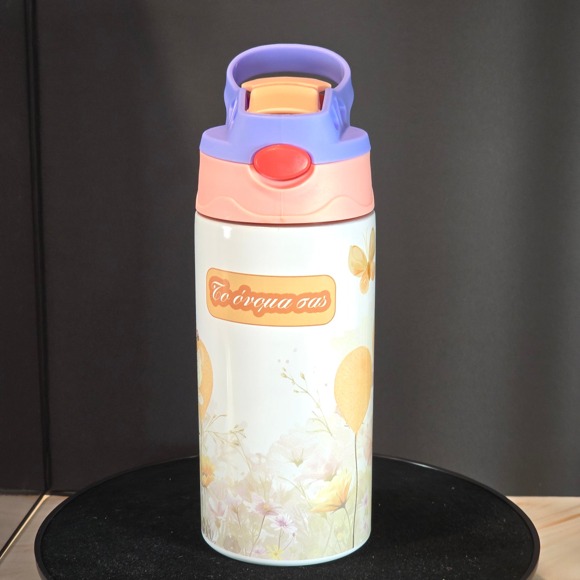 Χάρισε στη μικρή σου ένα κομμάτι μαγείας με το πιο ονειρεμένο παιδικό θερμός με όνομα και θέμα μια νεράιδα-πριγκίπισσα ανάμεσα σε λουλούδια, πεταλούδες και ρομαντικά χρώματα.